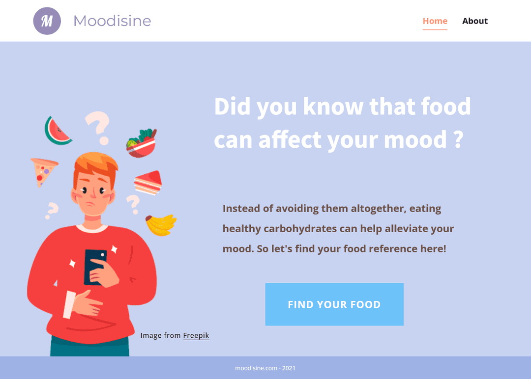 I made this on September 2021 for my passion project at Noble Academy Jakarta. This website is a random food picker based on emotions picked by the user. It uses HTML, CSS, and JS to deliver this experience