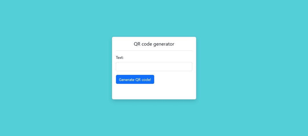 This project is a QR code generator. To use this, write the text in the text field and then click on the button. The QR code will appear below. To make this, I used a QR code API that returns QR code images as the output. I then set the source tag of an image tag to show the actual QR code. Notice that an alert will then appear, saying that the QR code has been generated. However, due to styling problems currently it does not support screens that are too small. In this case there is a JavaScript safeguard which prevents the user from reaching a problematic user experience and instead replaces the UI with a simple message stating the problem.